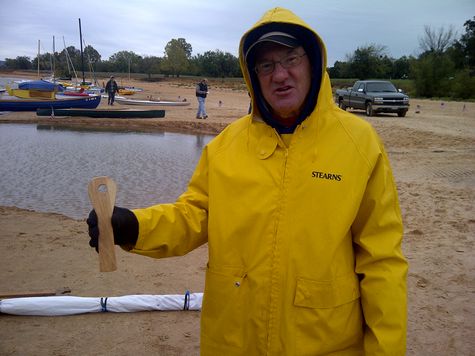 In above, Frank shows a wood wrench that you can make out of a scrap of ply that is sturdy enough to tighten the nut on a kickup rudder or leeboard.