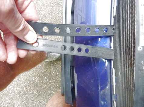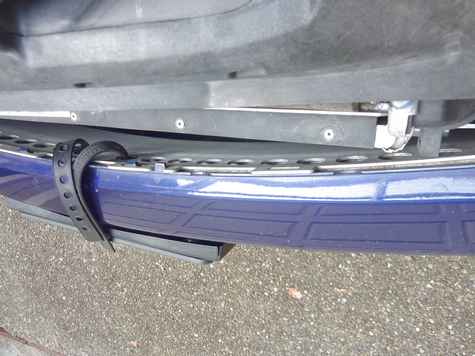 Make sure any clasp used on the end of the tie down strap is small enough to fit between the dowel and the upper T-connection, or attach the strap in such a way that one end of the strap is free and can fit through this location, as I did. If not, the strap can't be removed.
