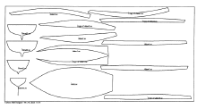 These are four bulkheads used as templates. The templates can be made of just about any wood, so long as they don't change their shape. I think you'll find that the tiny discrepancies between the template and your hull can be faired. Just don't press on the template too much - if it won't go fair the hull till it will. Smooth paint covers any mistakes, anyway. If you're thinking you might want to put this model in the water someday, remember to keep the outer keel wide enough to fasten a deep keel on it. What Carlson calls Chine 1 is the keel.