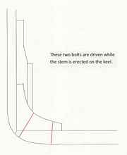 Looking at the bow, this seems like plenty of bolts in a small area. However I have to remind myself these sections of wood are huge by today's plywood and trailerable boat standards. The bolts which extended from the top of one member through another were pre-drilled. Those which extended into but not through a section were not pre-drilled. This was hard labor, not for the faint of heart.