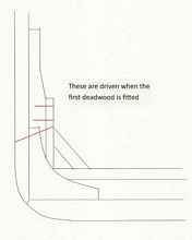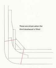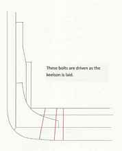 While the keel was being assembled, laying on its' side, the bolting schedule could begin. As you see, some bolts could be installed before the keel was raised upright to sit on its' chocks. Some bolts could be installed after it was upright on the chocks. The bolt heads were sunk beneath the surface of the wood, usually sunk on both side of the wood. Rings covered the bolt heads inside the ship, but not outside.