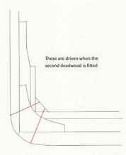The sternpost itself is straight, sitting on top of the rear of the keel. Usually a tenon kept the sternpost in line on top of the keel. In previous centuries the sternpost was as thick as the keel where the two joined, but tapered at the top. While a vertical sternpost was easiest to fasten, one angled 8-15 degrees was the normal rule. The inner sternpost was simply another layer of wood inside the sternpost for strength, often not needed on steamships. Still, when a sternpost stood at an angle, the inner post was almost mandatory. The inner sternpost was wider at its bottom with the keel than at the top: