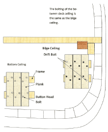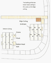 The bolting of the ceiling between decks is the same as that of the bilge ceiling. |
