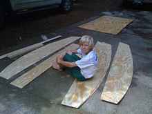 After building two ducks, and seeing just how easy it is to achieve a working boat, I decided to try to sell the idea of building a sailboat to my boys' Scout Troop. It took a bit of convincing before the committee would believe that we could do it, but just as they decided that it was something that we might be able to pull off, we were contacted by our local Sea Scout leader. He'd made a deal with some suppliers to pre-cut some plywood and stringers to make kits, if we were interested in building puddle ducks.