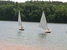 With the busy schedule that the boys have, we weren't able to work on them for more than a few weekend days, and the build stretched out much longer than we expected. It took nearly an entire year to get them completed, but we were finally able to take them all down to the lake for a day of sailing.