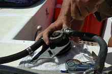 That was followed by changing the fuel filter on the engine. There was a great deal of garbage in the bottom of the filter so it was good I elected to change it. |