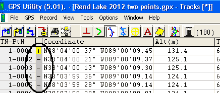By highlighting the track point numbers and pressing the delete key, the unwanted points are eliminated.