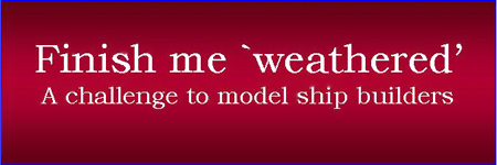 I have been asked a few months ago to run another challenge on an aspect of ship modeling, and a couple of visits to Auckland, New Zealand dock areas and wharves convinced me that perhaps those who model ships might like to show off their skills at the aspect of modeling involving `weathering’ of vessels, perhaps close to being abandoned by rust, others with their hulls damaged and in need of attention to wooden areas and so on. It is a challenging skill often applied to model railway engines, but having looked at an old tug in a stream and almost sinking in the shallows, it had such a look of having been abandoned that applied to ship models, sail or powered the effect could make for both appeal as well as admiration of skill that went into achieving the realistic effect.