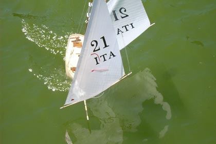 Flavio Faloci is a well known Italian model sailboat friend whom I have written about several times in the past. He lives in Genoa and has a gift for producing wonderful Footy (and smaller size sailboat models (shhh – can’t tell you about that yet!) all good sailers and each one usually absolutely beautifully produced and presented.