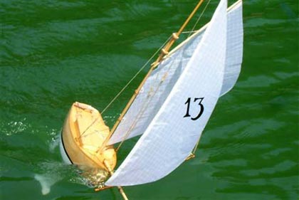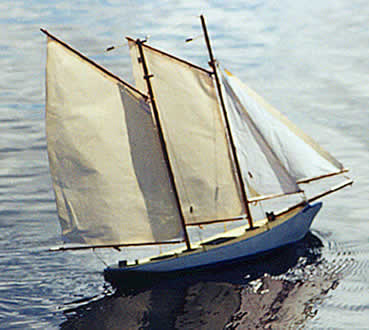 It is a gaff-rigged sloop with a solid wood hull out of balsa, The kit box advertised at the Wooden Boat Store for US$95. A how to build the boat book can be purchased separately for $19 and a set of plans for $25.
