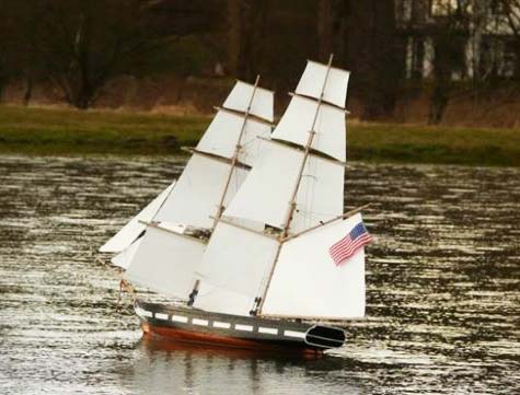 Phillip Artweger’s lovely USN Somers was damaged in a storm and awaits repairs to her fore tops’l yard and fore tope masts as well. I could spin a yarn that the square-rigger was caught in a storm off the coasts of Waggarwanka in Somalia while chasing pirates, but nothing so romantic. She fell off the top of a cupboard during a storm at her builder’s home in the Czech Republic so the storm bit is no bull.