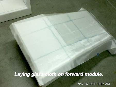 foam core. Without it, the finished fiberglass would bubble and peel off the foam.