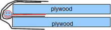 My first try at using this method to generate a strong flexible hinge was done by tracing the plywood part out in cardboard and making the cardboard spacer marginally wider than the plywood. This worked rather well but was a fair amount of work. My next idea was to use a thin rope wrapped in the bond breaking tape and this too was quite effective though the rope tends to flop about in uncontrolled directions resulting in a slightly wobbly seam. This gave me a nice seam wrapped around the piece of 1/8th inch rope.