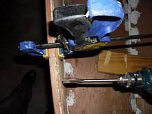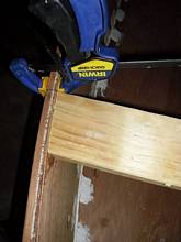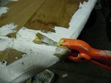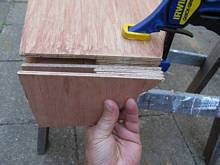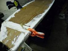Now you will need to temporarily fix the thwart in place using a clamp to stop it sliding towards the centre of the boat. The pressure of the sides attempting to fold in was more than adequate to hold it in place for me. A temporary tack or screw or nail might help if yours is not so well behaved.