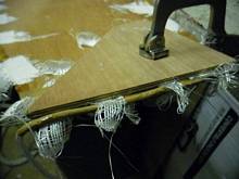 Now attach the end pieces to each of the panels. Here I am using the rope as a spacer. Though for most of the panels I used a bit of cardboard for the end spacers.
