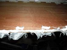 At this point I had a sudden panic realisation that I had forgotten to make a spacer for the end to fold so it would be held almost rigid in the corner. I had to do a bit of judicious forcing, resulting in some damaged threads but in the end a bit of rope with come tape wrapped round it came to my rescue. I had to do a little more patching on this later.