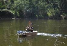 Others have sewed folding boats together using fishing line and a figure eight stitch and then sealed the gaps using waterproof fabric and contact adhesive or caulk (see the banana boat above). The duckchasers (or melon seeders) use contact adhesive and painted canvas. Some people have suggested ultra modern duct tapes such as Hurricane tape or 3M heavy duty Nuclear Duct tape for sealing the gaps on fishing line hinged folding boats. If you do this I suggest you have lots of emergency floatation on hand and don't try it in dangerous or cold waters.