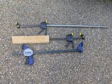 Tip for getting it open. While it is relatively simple to open Die Foldermaus it does have a lot of tension in it and if you are the sort of person who only has two hands I am going to quote an oft repeated axiom in wood working - you can never have too many clamps, or in this case you can never have too many spreaders. The sorts of clamps below have has two modes - clamping and spreading - when used as a spreader they make the job of inserting the removable thwarts very easy. When not using the spreader it becomes a much more difficult task. I am sure there are other methods as simple as a hinges in the thwarts etc. but this has worked to make it easy for me as I had them in the shed.