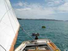 The day of the cruise came, and I towed the mothership the two hours to where I was to leave from, "Offcuts" strapped into the cockpit, rigged the boat and launched her, and was away.