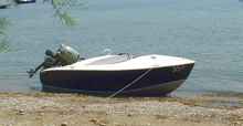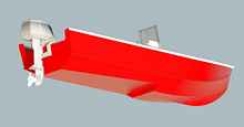 It's perhaps not surprising that the resultant design has a lot of similarities with the small outboard boats that are commercially available here yet Volare has one big advantage - weight. A 4.9m fiberglass boat here weighs over 800 lbs (and costs over 5,000 euros) - that's over twice the weight of the Volare Console version. This has a significant impact on the comparable power requirements, for example, according to the Crouch planing formula, the standard hull version of Volare will give the same performance as a production boat on 30% less power and the step hydroplane version (see below) will give the same performance on half the power.