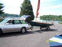 Saturday morning my crumbling lumbar vertebrae & discs made it clear that I couldn't handle my Wanderer no matter how badly I wanted another test of the twin keels and sprit mainsail. But I managed to get my 4hp Yamaha into the car, grabbed a second cup of coffee and some pain pills, and headed up to the lake, ready to take Steve up on his offer to have me aboard if I couldn't manage by myself. I didn't know if Tom would make it, but the weather was good and it had been way too long.