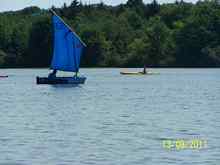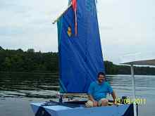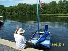 On Thursday the second week of August we finally got a decent weather forecast for Saturday, August 13th … mid-80's, wind out of the South at 5 – 10 as a front approached. 'Let's go up to Nockamixon' (major sailing venue 40 mile north of Philadelphia). 'Hey – we should let Tom Mauer and Paul Moffitt know' (local sailing rogues). I shot off an email, and (slow thinker here), on Friday I copied it and pasted it as a post on the Eastern Messabout site. Tom emailed back “maybe”; Paul - “busy working on the Michalak Piccup Pram”. A couple others got the word from the Messabout group, I guess, but not in time.