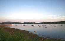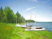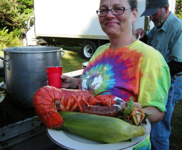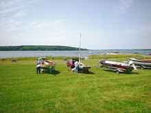 Saturday, the forecast was for modest winds, but as soon as we were in the water, the winds began to pick up. We sailed to Bean Island, had lunch and made plans to explore Young's Bay on the way back. However, the wind continued to build to 15+ knots and each Skipper decided to keep heading for Lamoine, with most under full sail. It was a spectacular run! What a way to end three days of sailing! Lobster dinner was awaiting us upon our return. After we arrived at Lamoine, most boats that came in were beached to await trailering. After about two hours, most of the boats that were not moored for the night had been pulled out of the water on their trailer and set in the trailer yard for pick-up. It was a marvelous choreography to watch and in which to participate (I took several turns cranking the winch). Afterwards, the lobsters were definitely calling us.