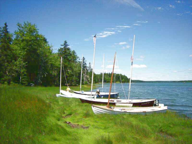 I just got back from sailing in the Small Reach Regatta off the coast of Maine, out of Lamoine State Park. It was one of the best experiences of my life. The weather was beautiful, except for Friday when there was "light air" for an hour or more at a time. There were 49 boats in the fleet, made up of varying sized vessels, wood and hand-crafted. There were some exquisite boats! I sailed with Mike Wick, my neighbor, as crew. He was a very patient teacher to a neophyte like me. He was the Skipper of the boat he built: "Moggie". As a Melonseed, she is shallow drafting, fairly temperamental, and extremely quick to react to weight displacement. On the other hand, she was incredibly fast and nimble. It was also fun to meet, sail, and socialize with many new people who have impressive credentials in the sailing world. Many of these folks have been sailing and racing for 40+ years. Many have turned their passion into the energy to build the traditional boat(s) of their dreams.