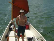 The sheet-to-tiller arrangement had in fact been overkill. Even better results were now obtained with the helm chocked amidships and the sails and boards in balance. She was doing splendidly on all points of sail on daysailing river tacks of one, two, three miles. It was all I had hoped for. I had mastered a set of controls.