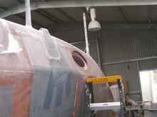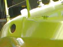 Apply the first layer of uni directional carbon fiber. Fan these layers out as shown. The strands go from the outside to the inside in the same pattern and length. The u.d. strands have to be fanned out as shown. This way the load is distributed evenly over the hull.