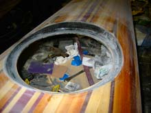 After the assembly cures in the deck the ID is trimmed with a sharp chisel and sanded fair to the deck opening.