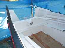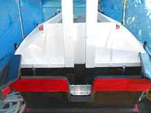 I waited to paint the cockpit sole until the seats were in place because without the seats I would go right through the flotation tanks. Not a good thing. You can see the control box for the motor just under and to the starboard side of the tiller.
