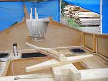 In the picture above you can see the tabernacle for the main mast and the daggerboard box directly behind it. I based this design decision on drawings of junks and even though the centre of resistance of the board is well forward of the centre of effort of the sails the large rudder should move the centre aft or at least that is the theory.