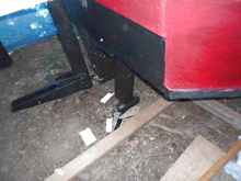 The black stripe you see going from the upper left of the picture down to lower centre is the haul strap for the trailer. I found that by using the 8 to 1 to keep the mast in the raised position and connecting the trailer strap to an eyebolt on the butt of the mast I didn't need to have the strong son-in-law always at hand to raise the mast.