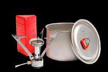 | MSR Rocket Pocket Stove and Pot Snow Peak Giga Stove Folded |