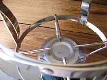 The Mini-Galley is a perfect size for a micro-cruiser like the West Wight Potter 15. However, the method of construction of the stove limits any repairs that an owner might be able to make. All components, other than the fuel control valve, are welded or riveted in place. In addition, the stove's basket style construction does limit the size and style of pots and pans that can be used with the stove. To use the stove a person must lower a pot down into the basket like structure, or slide the small fry pan into the basket.