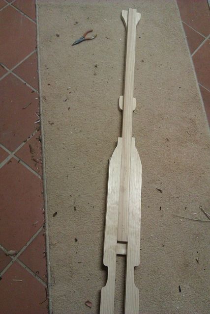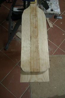 The back was formed using a piece of 19 by 45 (2 by 1) together with the offcuts from beside the hande/shaft of the paddle.
