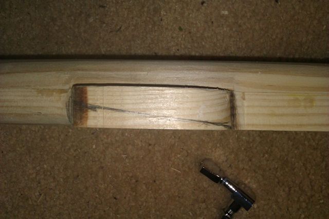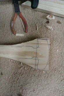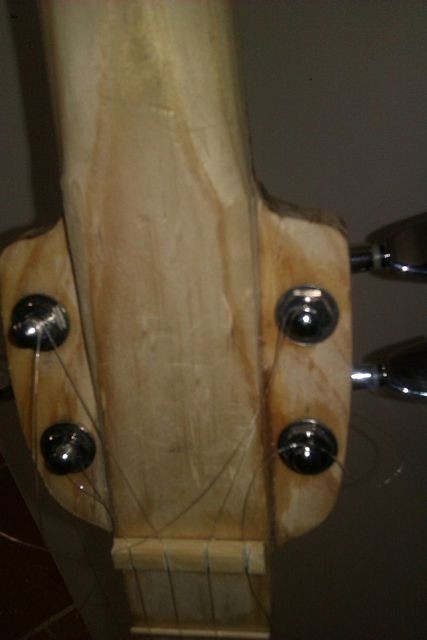 Now we shape the place where the tuning pegs will go. I just cut these at an angle. The tuning pegs are sealed machine heads bought on eBay from China.