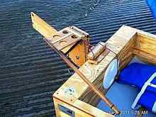 One of the many unique aspects of this design is the Tiller assembly. Because this is a small boat, width and space to move around is limited. So, instead of the pilot having to shift position to steer the boat, the Tiller flips from one side to the other, and the end result is the same; effortless steering.