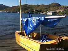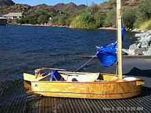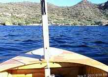 One of the elements of sailing that requires personal adjustment is the heeling of the boat. Some well designed boats heel just enough to make it pleasurable, others go to extremes and scare the heck out of you. Although this is a flat bottomed boat, it seems to behave well, and with the addition of the much needed daggerboard, excessive heeling can be sensed and the necessary corrections can be taken (let the sheet out, turn gradually) to prevent capsizing.