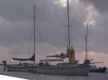 I got a ride from one of the yacht club people to where the Jeep and trailer were parked for the week. It was about two miles from the boat. In the meantime Bill started to try to move the boat to a place where we could get it on the trailer. It was difficult to get the boat to the regular ramp. We attempted to put the trailer in the water along the shoreline, but couldn't get the trailer deep enough to get the boat on. While I tried to move the trailer over to the ramp, Bill tried to move the boat to the area of the ramp. One problem was that it required moving the boat around the brake water for the ramp and harbor area. When Bill had moved the boat around the brake water, Clair and Noel arrived and began to help him get it to the ramp. After a while we finally got the boat on the trailer. We were one of the first boats to arrive at Seadrift and one of the last to get it on the trailer. After the boat was on the trailer, Clair took Bill to the motel for a shower. Noel started to help me to unpack the boat, de-rig, and get the mast down. While we were working on the boat, Clair returned. I asked Clair and Noel to use a hose at the marina to hose me down with freshwater and get the salt off me. The water spray felt very good. Washing off some salt felt great. We then finished getting things on the boat done. After the boat was secured, I drove over to the motel as well for my shower. Clair and Noel were a great help for two weary sailors.