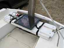 On the lower part I attached two bags to hold lines, VHF radio, sunscreen, etc. I also put a compass mount on the lower part. In 2011 I also added drink holders on each side of the bags.