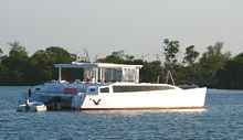 I had last seen her in 2002, and feared Ted and Patty had "swallowed the hook", as so many folks do at a certain age. Then one evening, after I had just described Ibis to a couple from a Gemini cat, a sleek motor cat pulled in and anchored between us. Sure enough, it was the re-incarnated Ibis! I had not seen them because they had been down in the western Caribbean (Belize, Honduras) for years. After that adventure, they were feeling less ambitious about their sailing plans, and less able to handle the big rig. But they still wanted to putter about Florida's west coast. So at very little expense, Ted took the rig down, built a hard top for the cockpit, and added a second sled and 4 cycle outboard motor. Now he has a terrific power cat that can fit under the many bridges along the ICW! Ibis can spin in place, and with her shoal draft, squeeze into the many cozy mangrove anchorages along the coast.