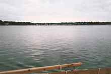 Of course, last year's trip had turned out to be more of an adventure than we'd bargained for: grounded on a falling tide on Georges Island, finally getting off at night only to discover the centerboard case was jammed with sand and gravel, sailing for our site on Grape Island until we couldn't point, then anchoring for the night; a morning visit to the nearby shore to get a rock big enough to hammer the centerboard loose, and finally arriving at Grape Island at check-in time - but a day late.