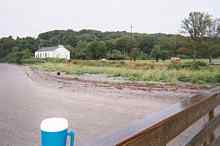 Outside the outermost wall of Ft. Warren in the rain and fog.