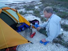 Pehr and Sammy set up a tent on the beach while Stan rigged a boom tent on Spartan and camped aboard.