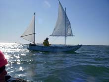 • Chris Tomsett and Cathy Wright crewed on Otter, a John Welsford designed Sherpa stretched to 11 feet, with a geriatric wiener dog named Major barking out orders.