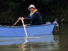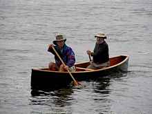 Victor's initial launch was as successful as it was anti-climactic. Grabbing one of our hand-made paddles, I scrambled into the bow while Paul Herbert took a place in the stern. Other than some minor flexing of the wide, flat plywood bottom - attributable to our decision to install a minimalist keelson - the hull was immediately proved water-tight, sound and stable. Paul and I executed a few quick maneuvers in the way of sea-trials, predominantly loops and figure-eights, predominantly attributable to my relative lack of canoe inexperience and a seeming disability to paddle in a straight line.