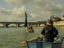 Arriving in Blois, we immediately set about launching a canoe (Victor? Or what it Hugo? We never were quite sure which was which), Peter's kayak and Albert's skiff. Our goal was to find an amenable, sheltered spot on the shoreline to camp for the night before setting out on the river the next morning. Our launch spot was a small park directly opposite the town of Blois with terrific views of the town Chateau, towering Cathedral and a plethora of traditional French boats known as "futreaus".