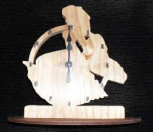 So now you go ahead and glue your pattern to the wood. Laminated ply up to 3/4" is great but pine should do. Knots are good and add character with these projects as long as they are not in a real bad place. I prefer using plywood myself. It is much stronger and that is handy for the clock circle on the left but with mine I chose 3/4" thick pine and a 1/4" thick base. It does not matter a whole lot what you use and while I am at it this project, unlike rocket science, is meant to be fun and not perfect. We are using scraps remember. If the hands are a bit long or such, who cares.